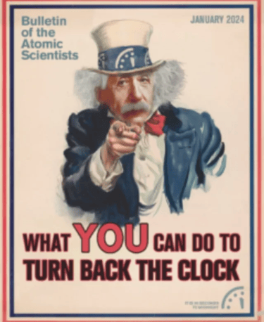 The Bulletin of Atomic Scientists sets the global "Doomsday Clock" 90 seconds to midnight