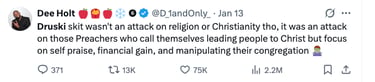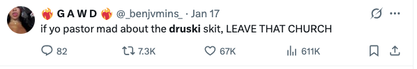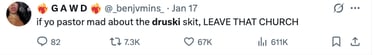 Very few pastors have publicly acknowledge Druski's rebuke. However, many spectators took to X to express their opinion.