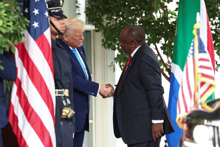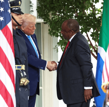 On May 21, 2025, South African President Cyril Ramaphosa met with U.S. President Donald Trump in the Oval Office, a meeting that quickly escalated into a public confrontation. Trump accused South Africa of committing a "white genocide" against Afrikaner farmers, presenting misleading evidence, including images from the Democratic Republic of Congo. Ramaphosa remained composed, calmly refuting Trump's claims and emphasizing that violence in South Africa disproportionately affects Black citizens. Analysts praised Ramaphosa's diplomatic poise during the meeting.